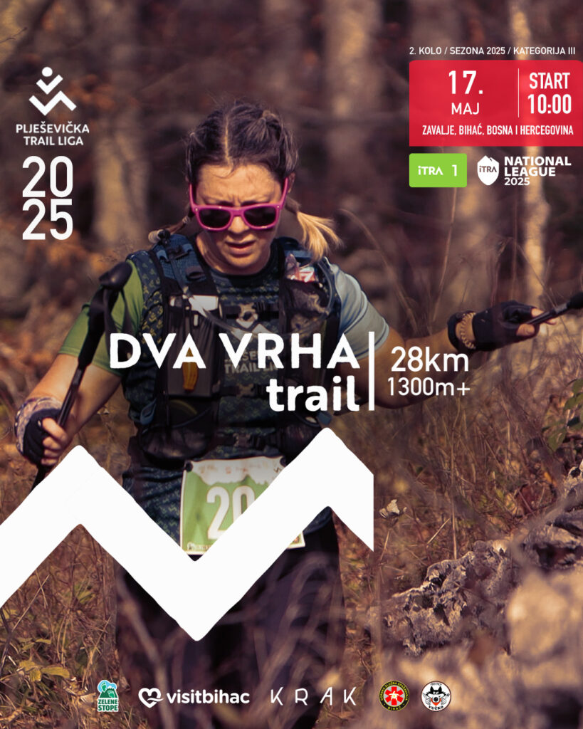 Drugo kolo Plješevičke trail lige donijelo je najdužu i najzahtvjevniju trku u sezoni, DVA VRHA trail dužine 28km sa 1300 metara ukupnog uspona. Svježe proljetno jutro i savršeni uslovi za trku rezultirali su najbržim izdanjem ove trke do sad. Trku je startalo 41 trkača i trkačica, a završilo njih 38.