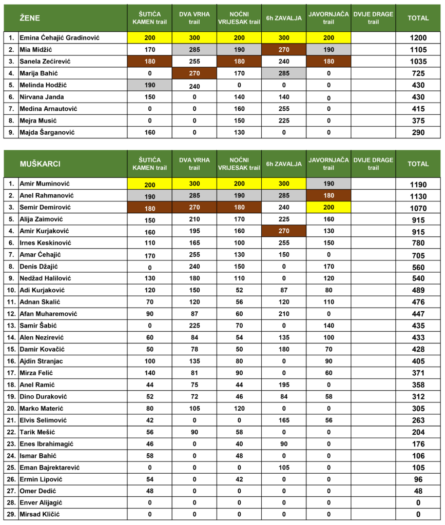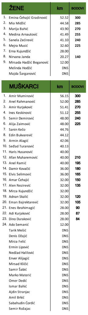 Amir Muminović sa istrčanih 56,15 km, Anel Rahmanović sa istrčanih 52 km, te Amir Kurjaković sa 51,41km.